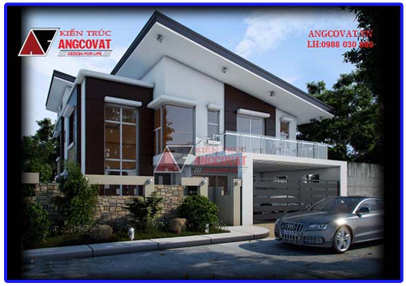 Mẫu 5 : Thiết kế mặt tiền 2 tầng mái lệch sang trọng và độc đáo