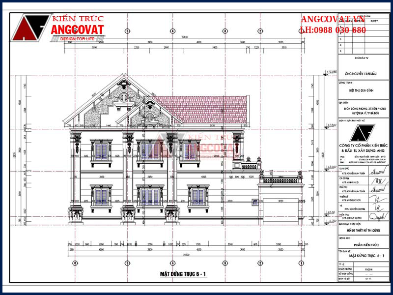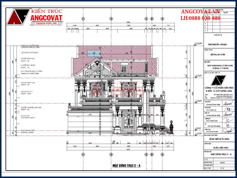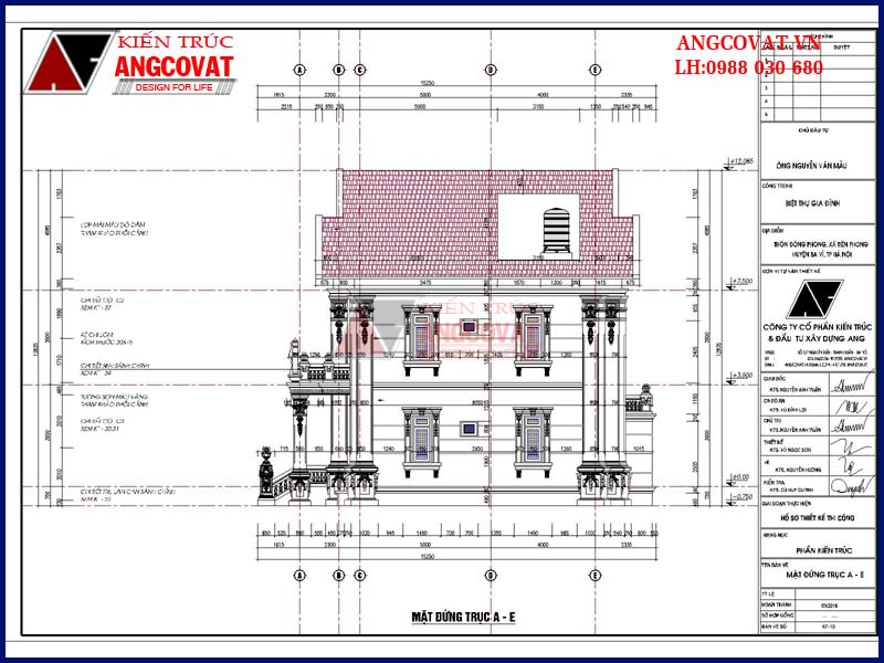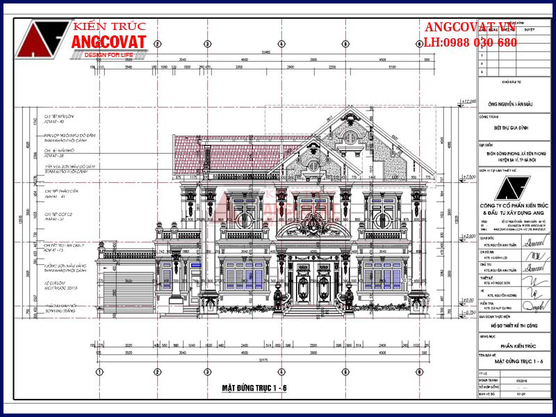 Bản vẽ mặt đứng 1-5 thiết lế biệt thự 200m2 cổ điển 2 tầng 5 phòng ngủ