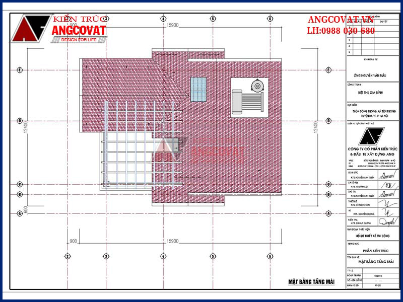 Mặt bằng mái nhà 2 tầng thiết kế biệt thự 200m2 cổ điển 5 phòng ngủ