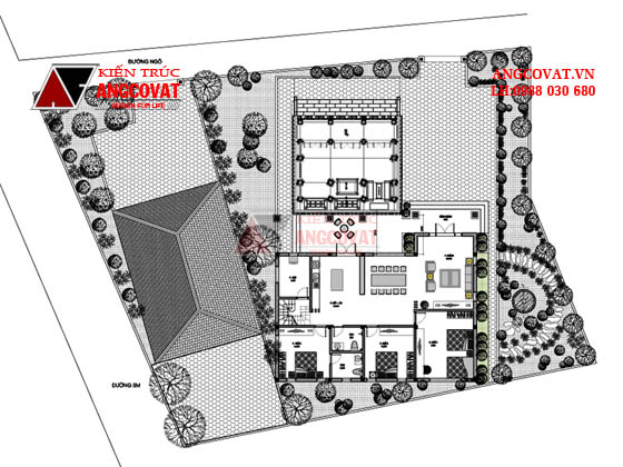 Mẫu nhà thờ họ kết hợp nhà ở có sân vườn bao quanh mang lại cho ngôi nhà không khí trong lành