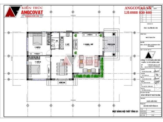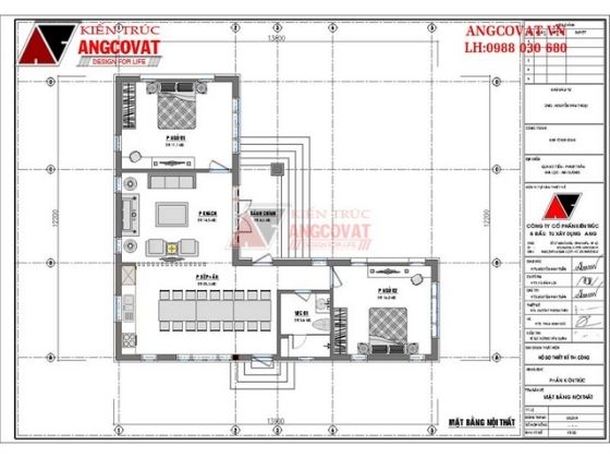 Chi tiết thiết kế: Hồ sơ thiết kế mẫu nhà cấp 4 3 phòng ngủ 1 phòng thờ 1 phòng khách 100m2