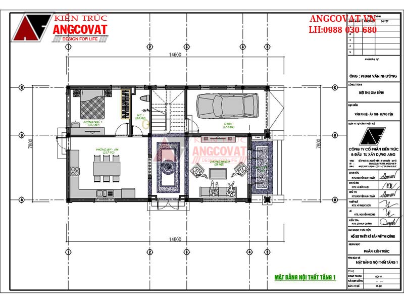 Mặt bằng chi tiết thiết kế nhà 2 tầng 8x15m - Mặt bằng tầng 1