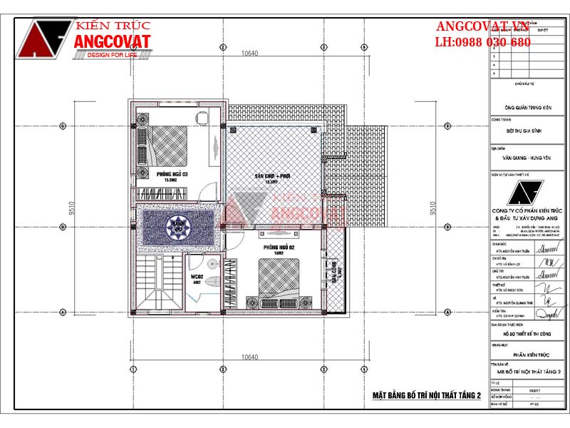 - Tầng 2: Phòng ngủ 2( 16m2), Phòng ngủ 3( 15.5m2), WC 2( 6m2), Sân chơi + sân phơi