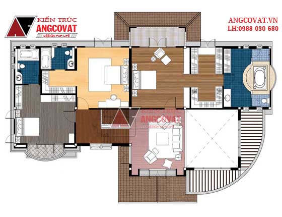Các phòng ngủ đều được thiết kế phòng vệ sinh khép kín với diện tích rộng. Đặc biệt phòng ngủ phía bên phải được thiết kế rộng nhất làm không gian riêng tư nghỉ ngơi của vợ chồng chủ đầu tư. Khu phòng ngủ lớn này tích hợp phòng ngủ, phòng làm việc, phòng thay đồ và cả 1 phòng tắm vô cùng rộng giúp chủ nhân có thể sử dụng được nhiều chức năng trong 1 phòng.