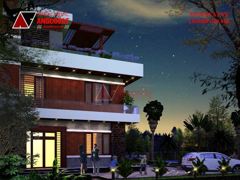 Phối cảnh 5: Mẫu thiết kế nhà 10x15m 3 tầng diện tích 130m2 mái bằng
