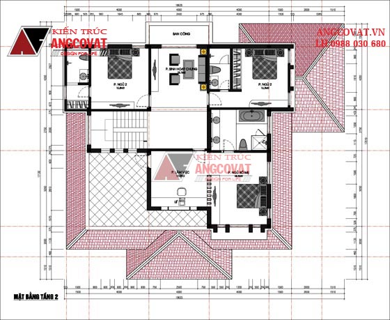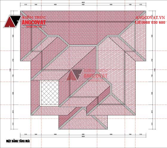 Mặt bằng tầng mái của mẫu thiết kế nhà đẹp 200m2 ở Thanh Hóa sẽ cho quý vị cái nhìn cụ thể hơn về kết cấu mái nhà. Kết cấu mái thái được thiết kế xuôi đa chiều tạo nên vẻ đăng đối và đẹp ở mọi góc nhìn. Điều này đã tôn lên sự bề thế, vẻ đồ sộ cho ngôi biệt thự 2 tầng 18x15m này.