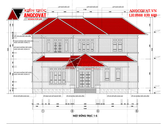 Mặt đúng trục 1-5 nhà 2 tầng phong cách hiện đại