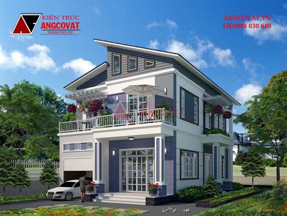 Thiết kế nhà 3 tầng với kiến trúc hiện đại, tập trung miêu tả mảng miếng, khối kiến trúc, dễ dàng trong sự kết hợp khối và màu.