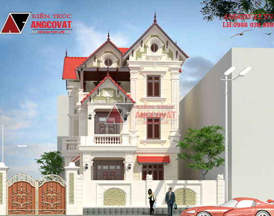 Thiết kế biệt thự phong cách tân cổ điển 3 tầng diện tích 170m2 BT41265