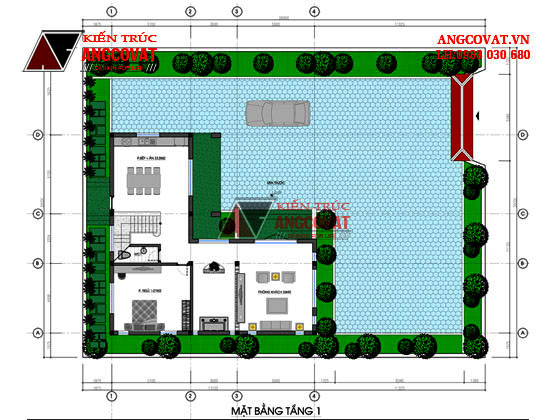Mặt bằng tầng 1 - Thiết kế mau biet thu 9x15m 2 tầng mái thái hình chữ L diện tích 100m2 BT211255