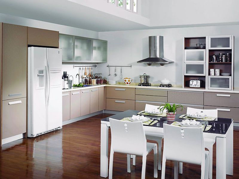 Một khu vực trong ngôi nhà của bạn giúp gắn kết mọi người lại với nhau cùng với bữa cơm giản dị nhưng tràn ngập tình yêu thương. Trong không gian rộng rãi này mọi người có thể cùng nhau nấu những bữa cơm tốt cho sức khỏe. Nội tất hiện đại tiện nghi, gọn gàng sạch sẽ. Không gian nấu rất dễ làm bay mùi thức năn đi vừa nhờ vào máy hút mùi vừa có cửa sổ được thiết kế ở bên trên. Thiết kế ấy cung cấp cả ánh sáng tự nhiên cũng như không khí được lưu thông liên tục. Màu sắc sử dụng là màu trắng và nền được lát gỗ sáng bóng, mọi người sẽ nghĩ phòng bếp để màu trắng thì sẽ dễ bị bẩn. Nhưng không màu trắng sẽ làm cho không gian sáng hơn, sạch hơn phát hiện vết bẩn dễ hơn để dọn dẹp.