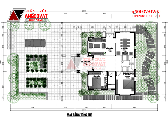 Mặt bằng tổng thể mẫu nhà 2 tầng 130m2 mặt tiền 13m.