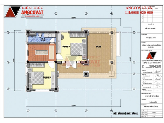 +) Tầng 2: 2 phòng ngủ(15m2), 1 phòng thờ(8.5m2), 1 WC( 4m2).